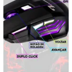 Além da programação do DPI, ele tinha 2 botões de atalhos, onde você pode programar as funções do mesmo em seus jogos preferidos ou ajudar na sua navegação na internet. Botão Fire (Double Click) 2x mais disparos nos seus jogos de FFS